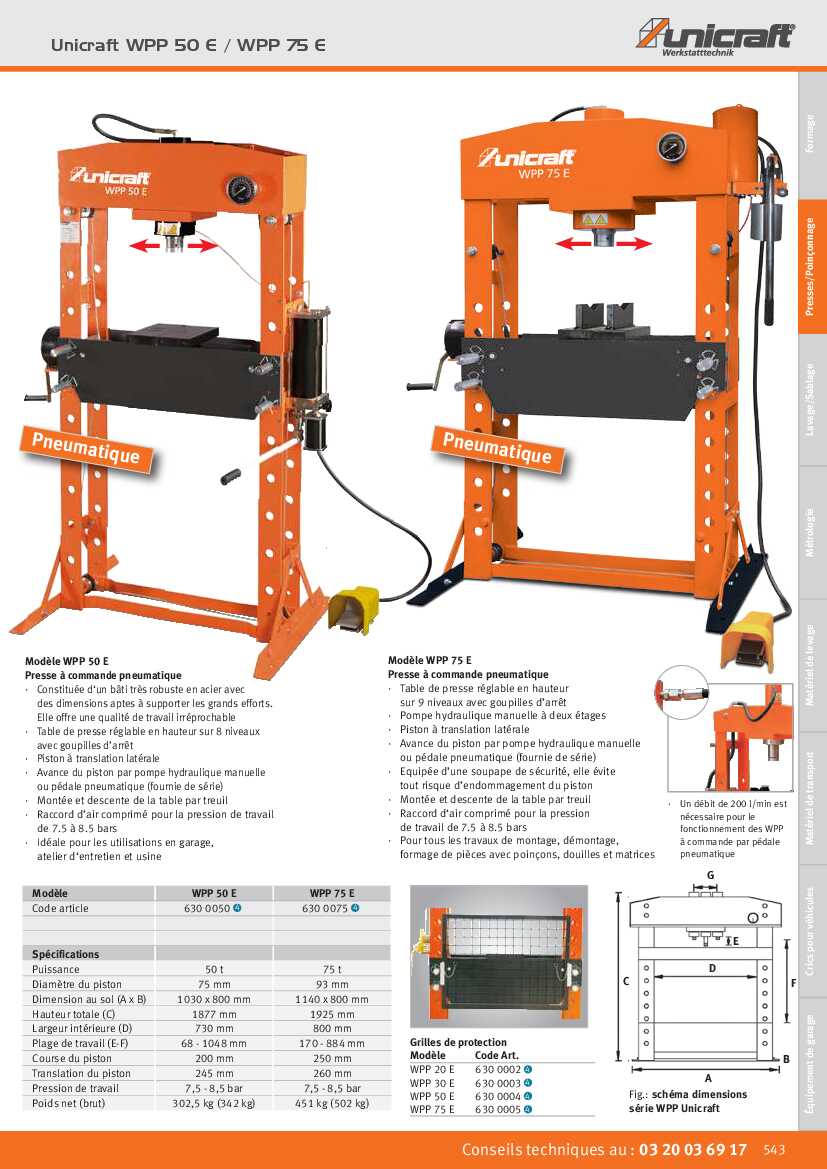 Spécification: Presse à commande pneumatique Unicraft WPP 50 E