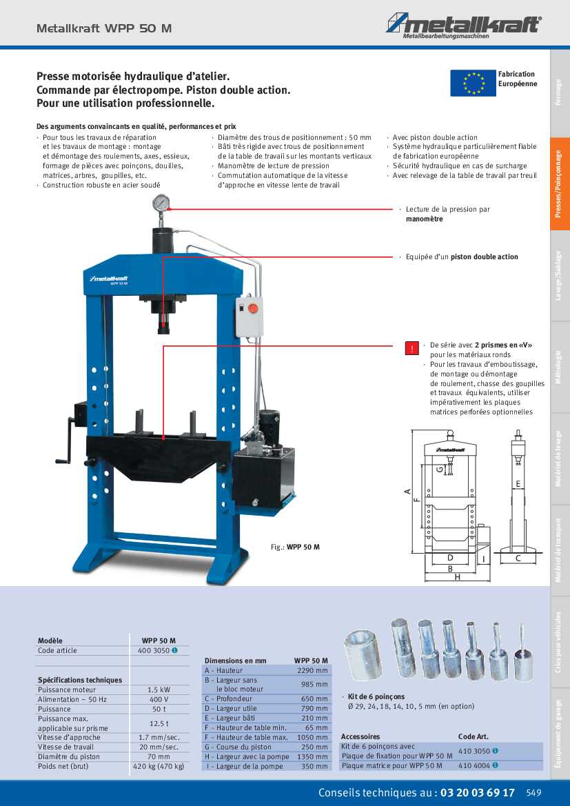 Spécification: Presse hydraulique Metallkraft WPP 50 M