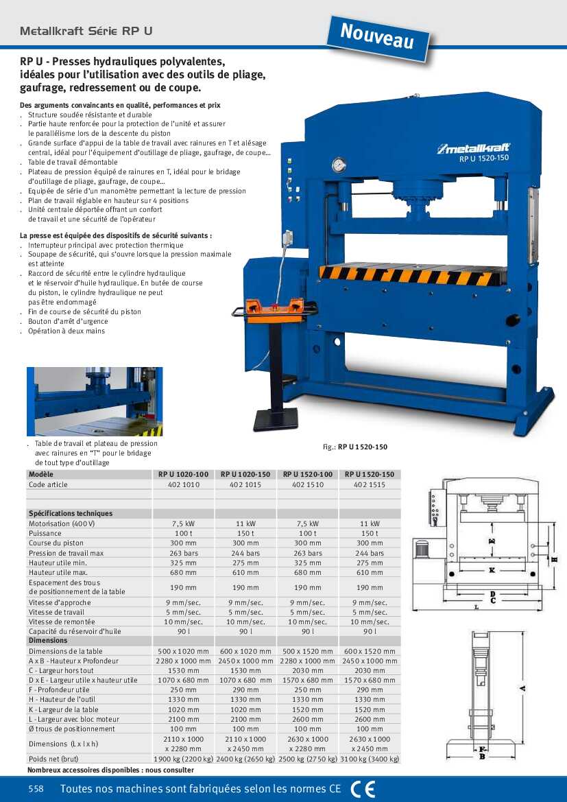 Spécification: Presse hydraulique Metallkraft RP U 1020-100