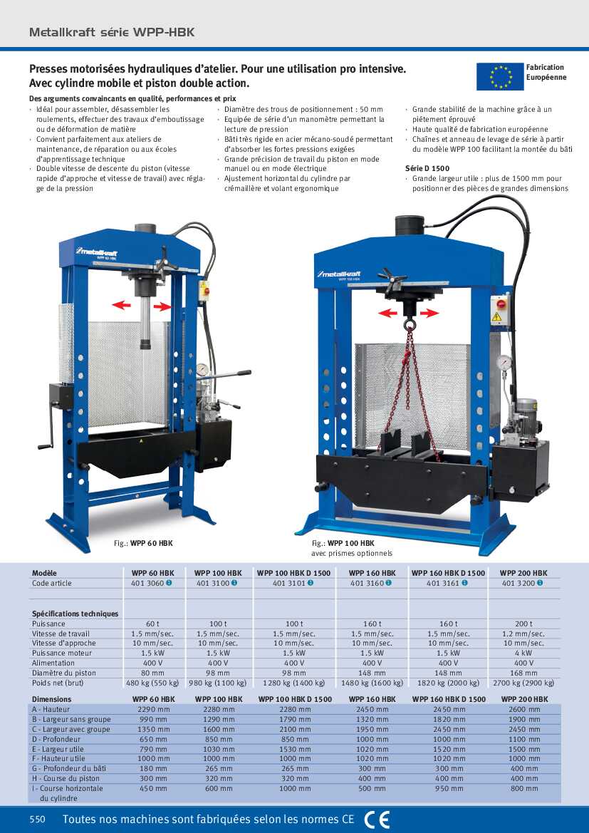 Spécification: Presse motorisée Metallkraft WPP 100 HBK