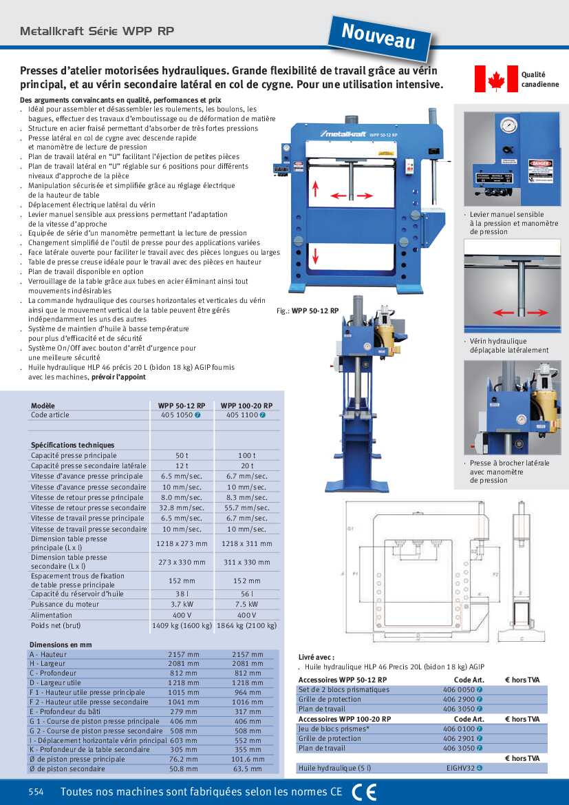 Spécification: Presse motorisée Metallkraft WPP 100-20 RP