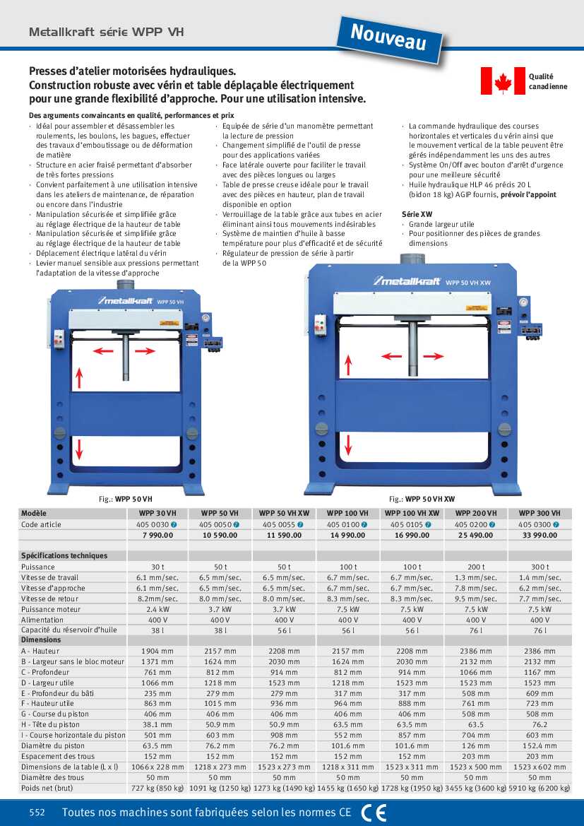 Spécification: Presse motorisée Metallkraft WPP 50 VH