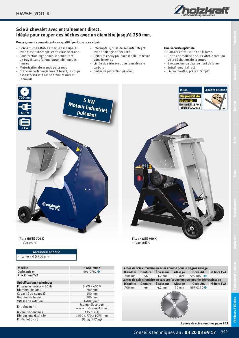 Spécification: Scie à chevalet Holzkraft HWSE 700 K