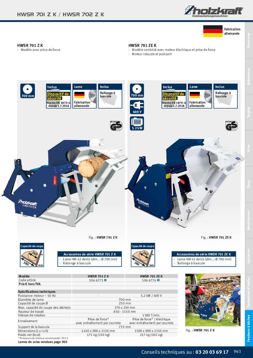 Spécification: Scie à chevalet Holzkraft HWSR 701 ZE K