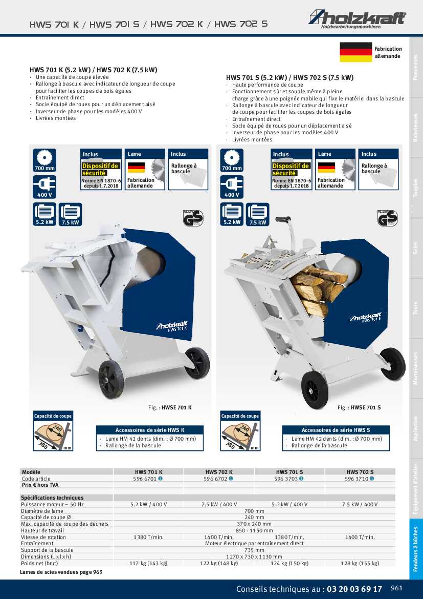 Spécification: Scie à chevalet Holzkraft HWSR 702 K