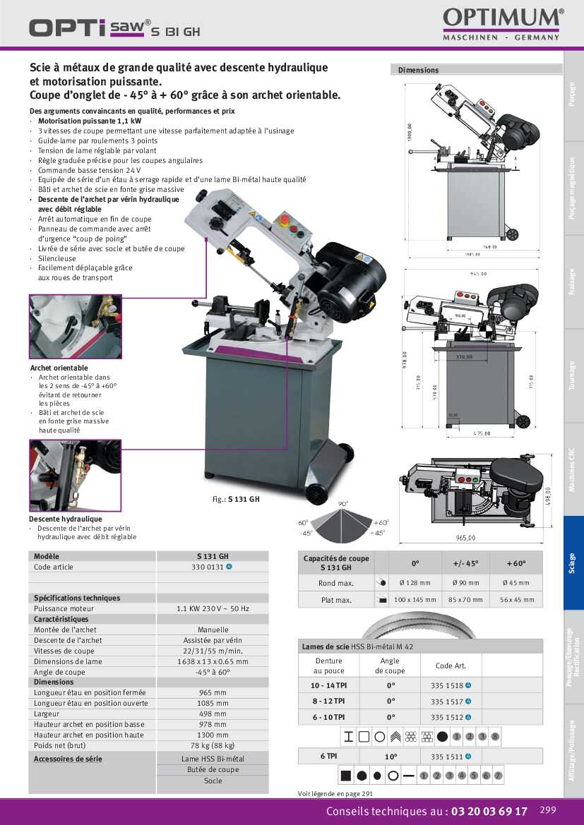 Spécification: Scie à ruban Optimum S 131 GH