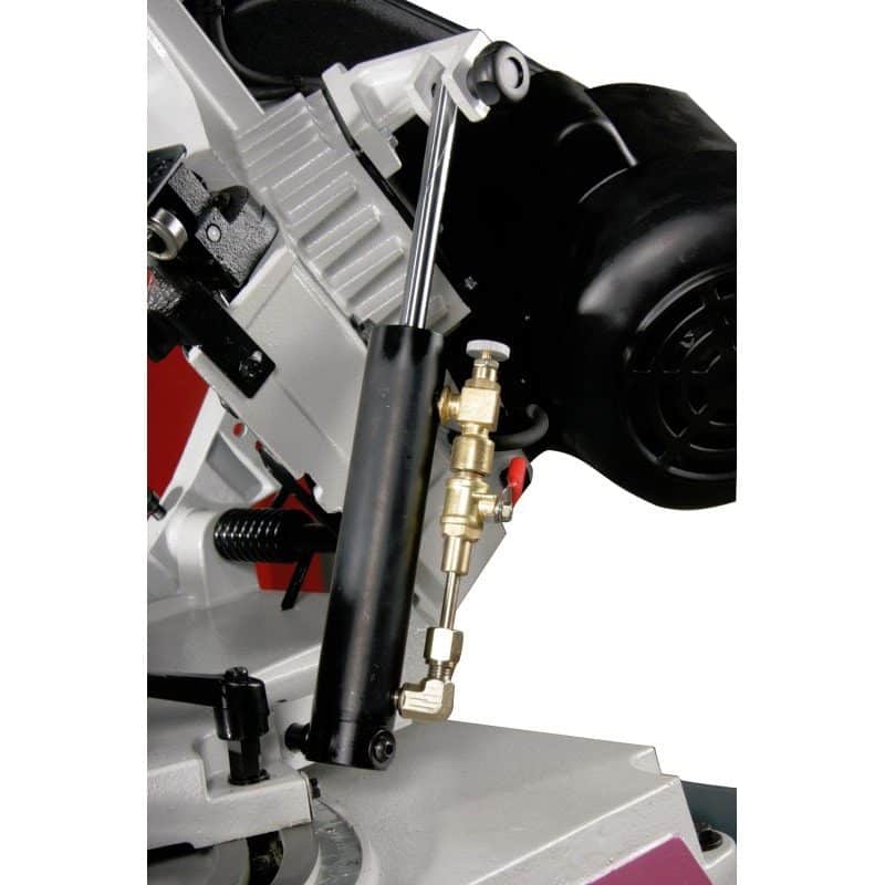 Scie à métaux de grande qualité avec descente hydraulique et motorisation puissante. Coupe d’onglet de – 45° à + 60° grâce à son archet orientable.