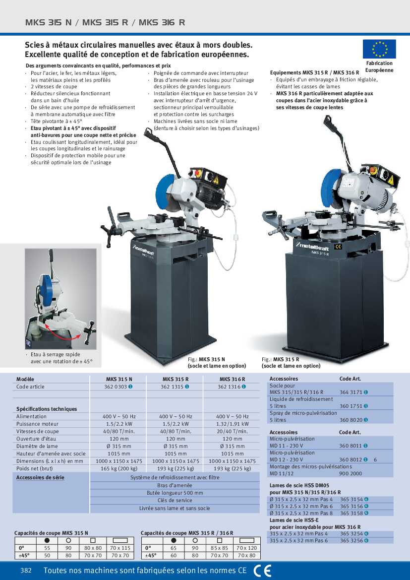 - MKS 316 R particulièrement adaptée aux coupes dans l’acier inoxydable grâce à ses vitesses de coupe lentes