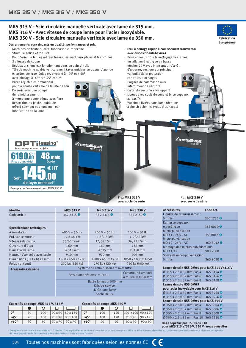 Spécification: Scie circulaire semi-automatique verticale Metallkraft MKS 315 VH