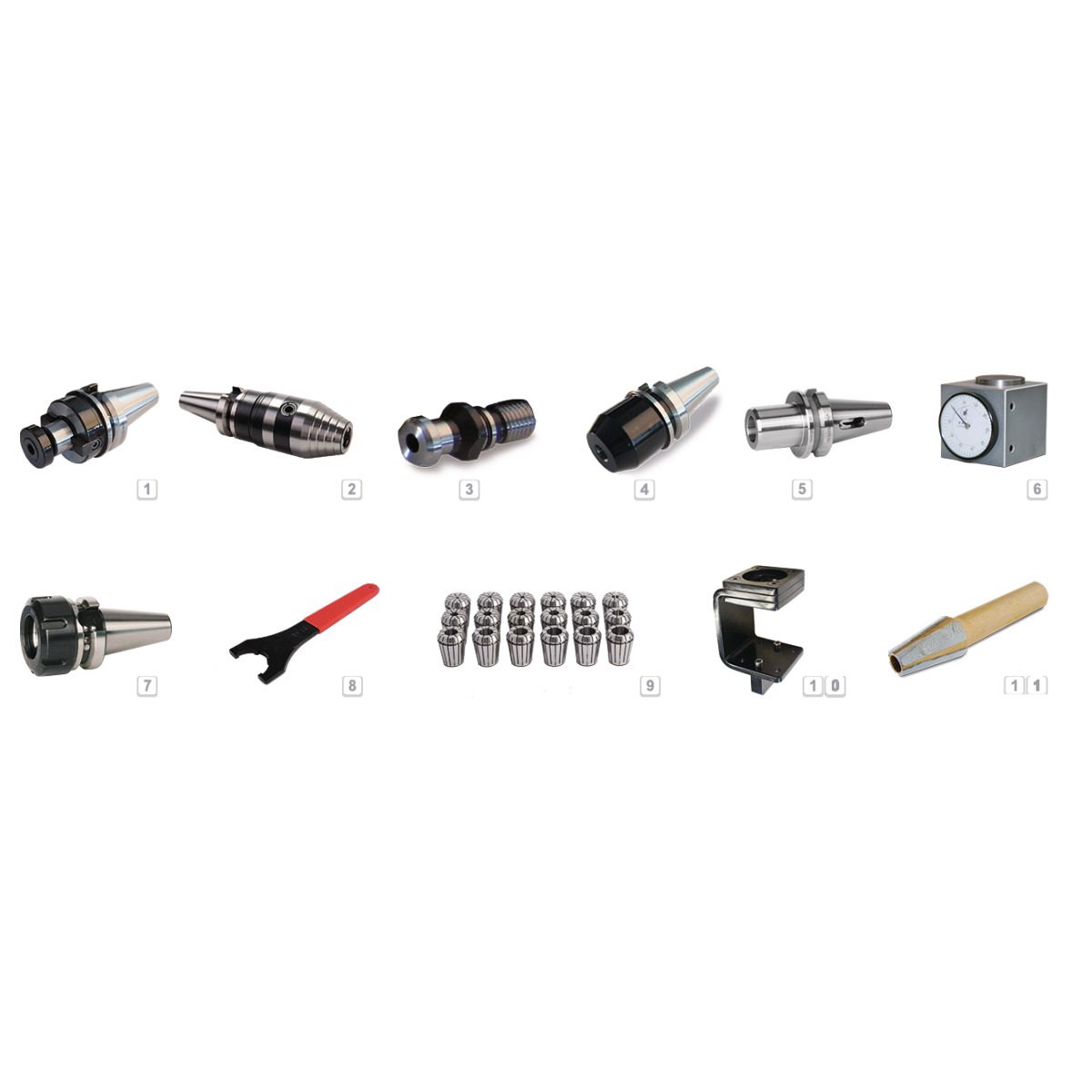 • 2 x jeux de pinces ER 32, 3 – 20 mm