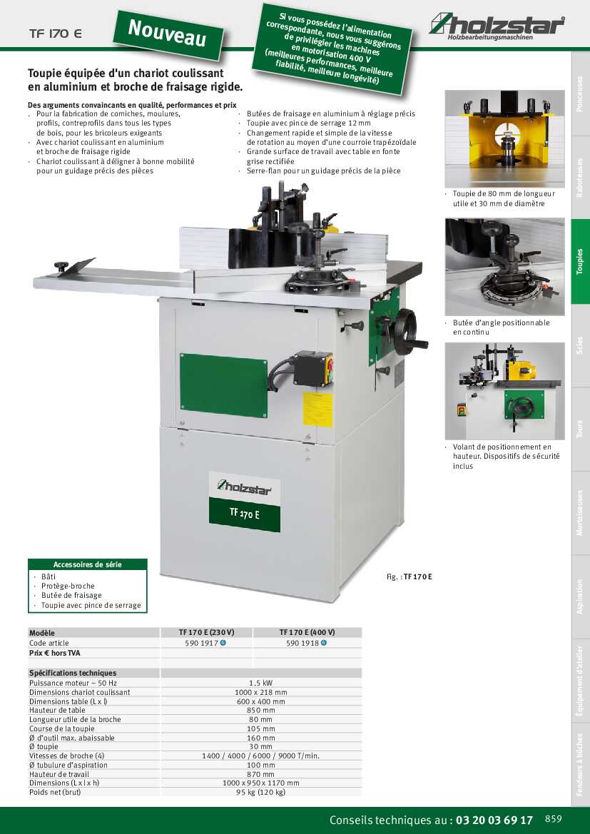 Spécification: Toupie Holzstar TF 170 E (400 V)