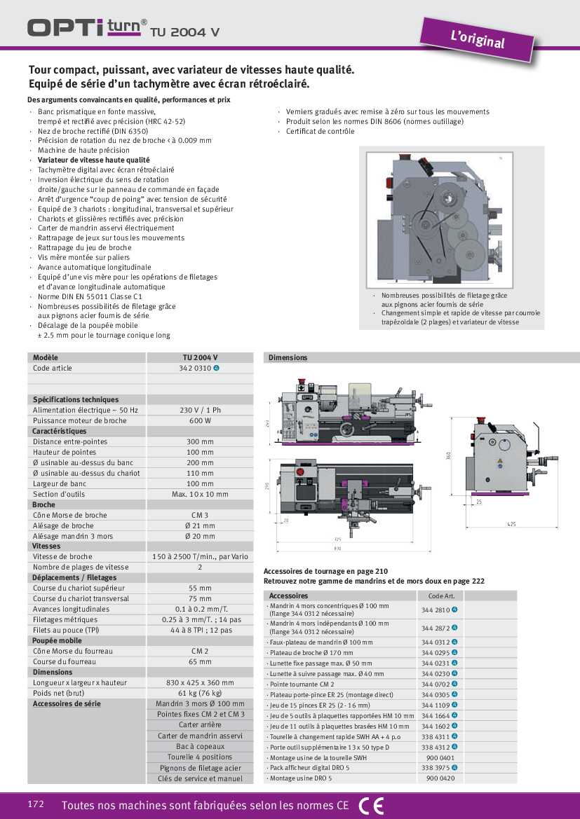 Tour compact, puissant, avec variateur de vitesse haute qualité. Équipé de série d’un tachymètre avec écran rétro-éclairé.