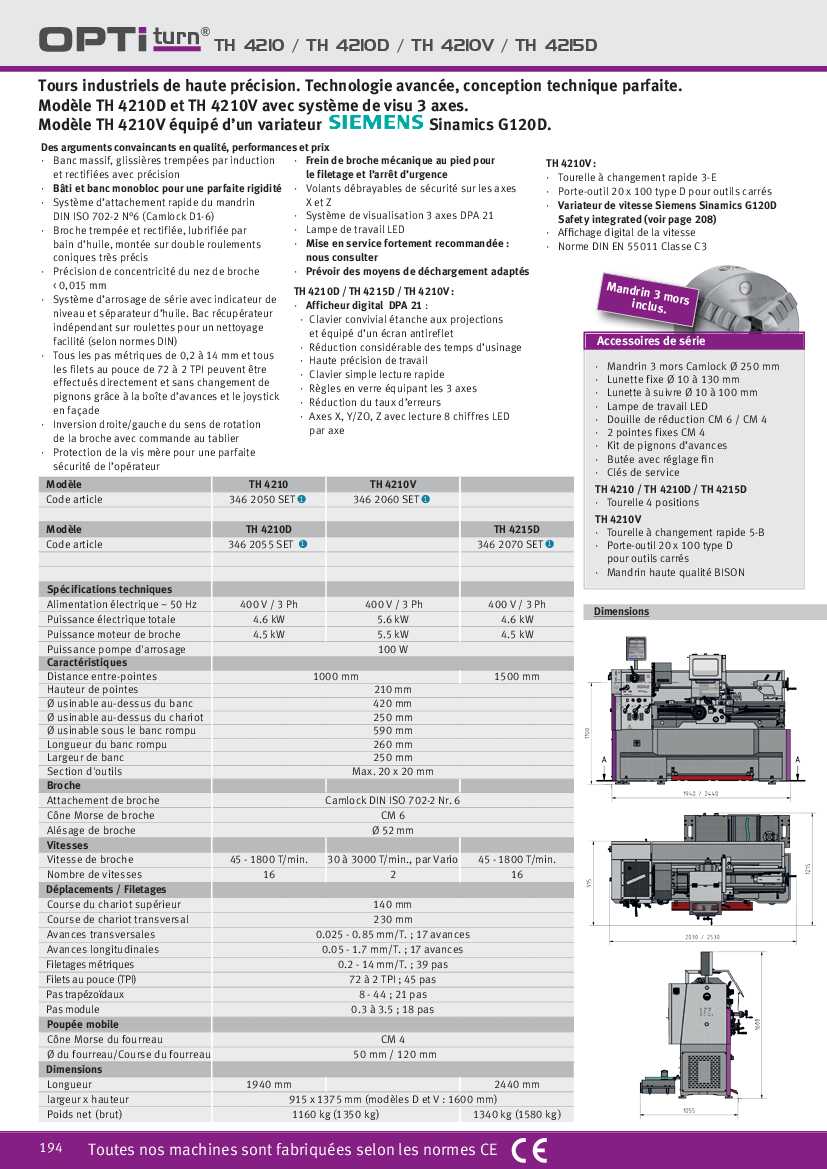 Tours industriels de haute précision. Technologie avancée, conception technique parfaite. Equipé d’un variateur SIEMENS Sinamics G120D.