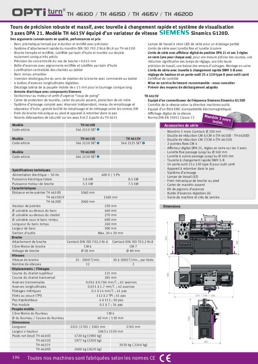 Tours de précision robuste et massif, avec tourelle à changement rapide et système de visualisation 3 axes DPA 21. Il est équipé d’un variateur de vitesse SIEMENS Sinamics G120D