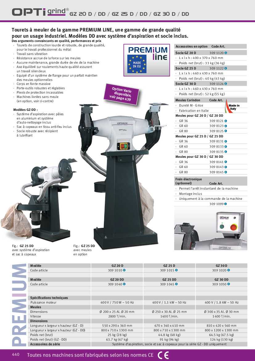 Spécification: Touret à meuler industriel Premium Line Optimum GZ 20D