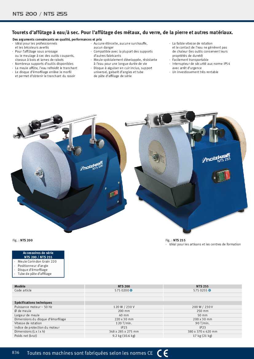 Spécification: Touret d’affûtage à eau et à sec Holzkraft NTS 200