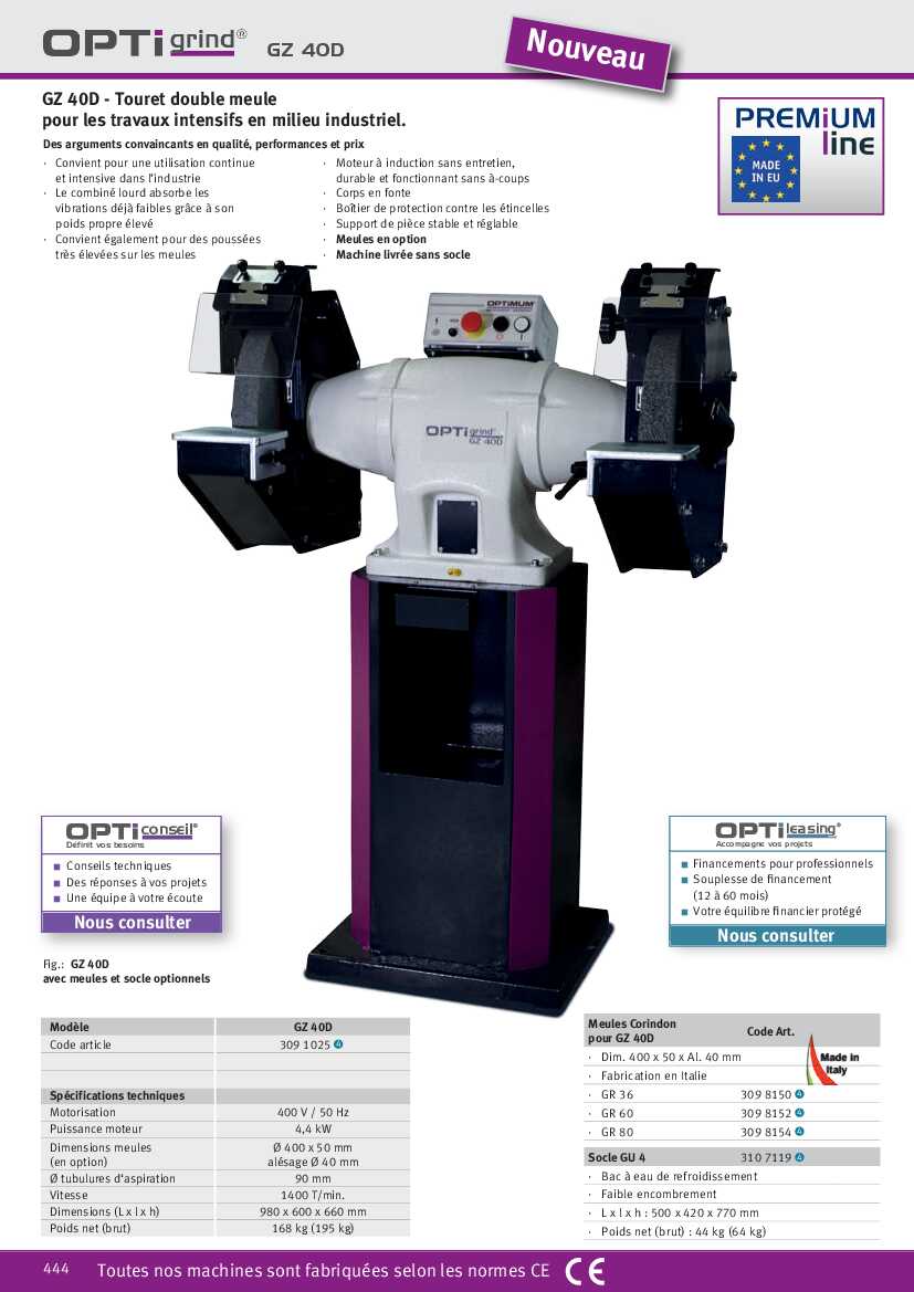 Spécification: Touret double meulePremium Line Optimum GZ 40 D
