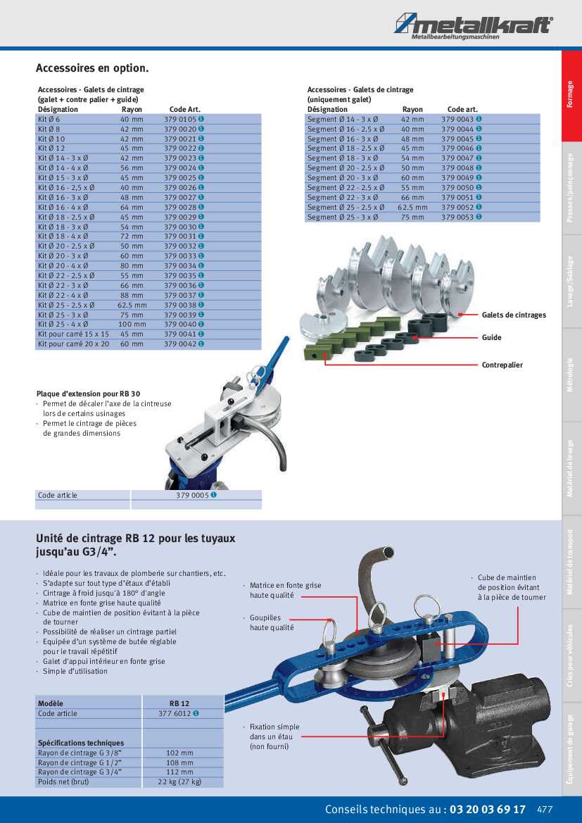 Spécification: Unité de cintrage Metallkraft RB 12 pour tuyaux