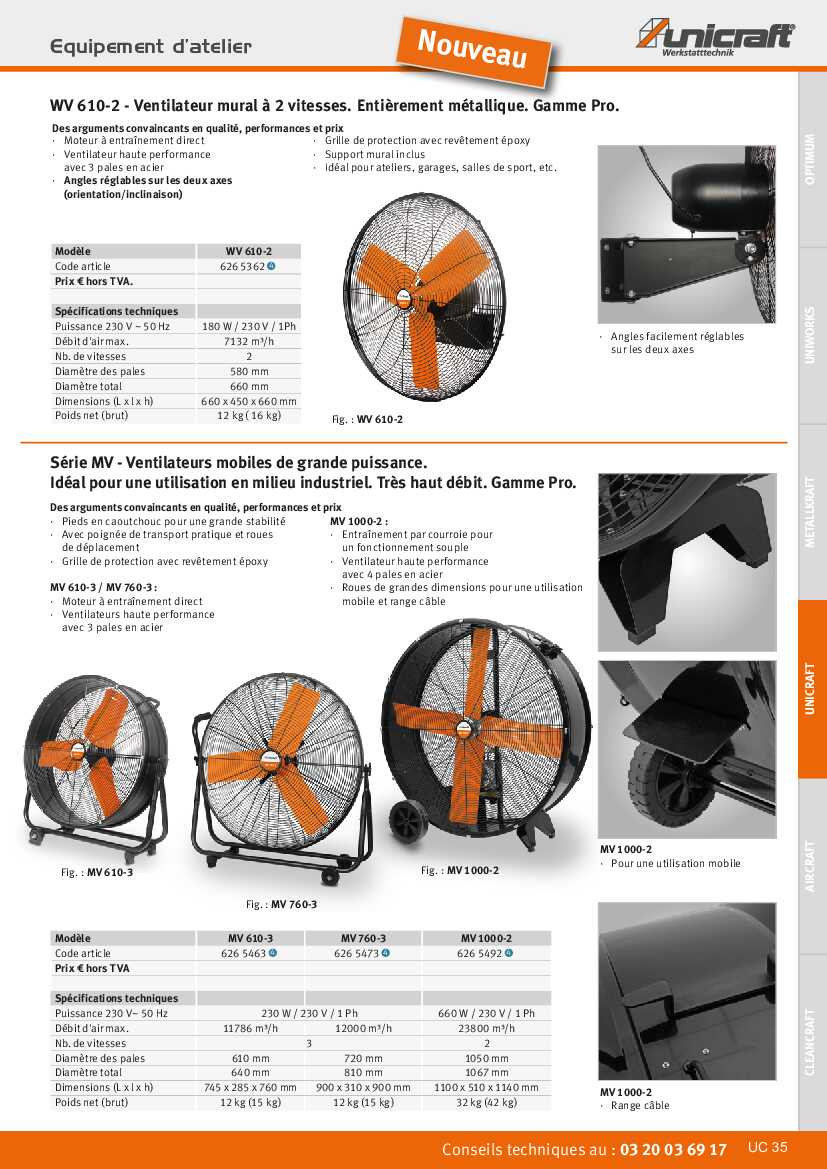 Spécification: Ventilateur mobile Unicraft MV 1000-2